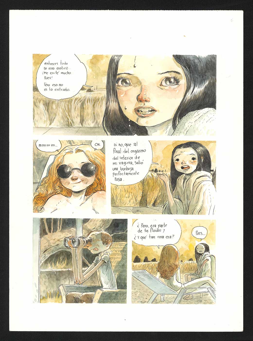 “Il tratto tremolante, nell’intreccio ondulato dell’inchiostro, restituisce tutta la fragilità umana che le sue storie raccontano. L’acquerello traduce la permeabilità di mondi sempre dondolanti fra reale e fantastico. Sandoval costruisce negli anni una visione di una coerenza potente, ma mai monolitica. Perché la sostanza stessa dell’immaginario che abita è densa di contrasti, e fluida, gassosa. Plasmata con vento, acqua e polvere. Sempre tesa alla trasformazione, che si tratti del passaggio all’età adulta o del disfarsi delle ossa in sabbia per divenire spirito, dentro cicli sconfinati di vita e morte.”